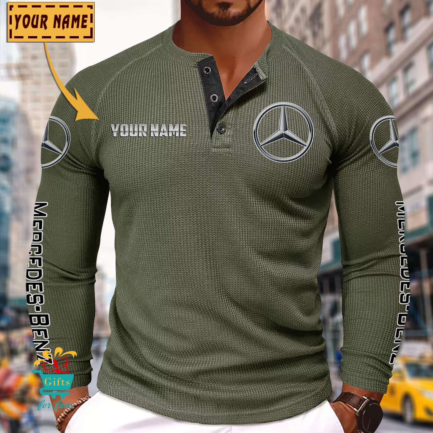 Mercedes-Benz Custom Name New Edition Henley Long Sleeve Shirt