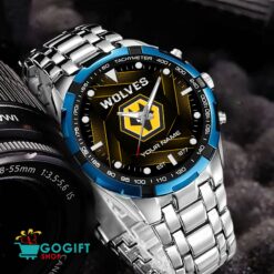The Wolverhampton Wanderers FC Steel Watch effortlessly combines sporty elegance with team pride, featuring a durable stainless steel design and the iconic logo, making it a stylish and spirited accessory for every fan.